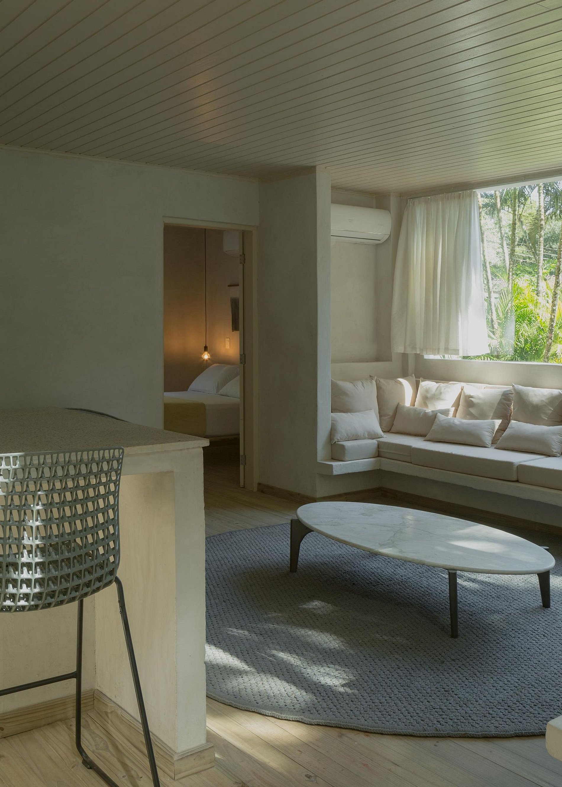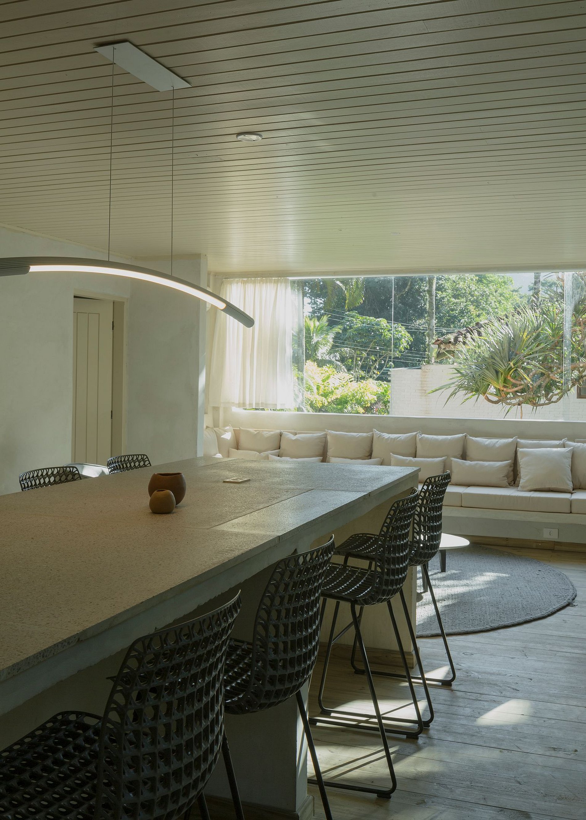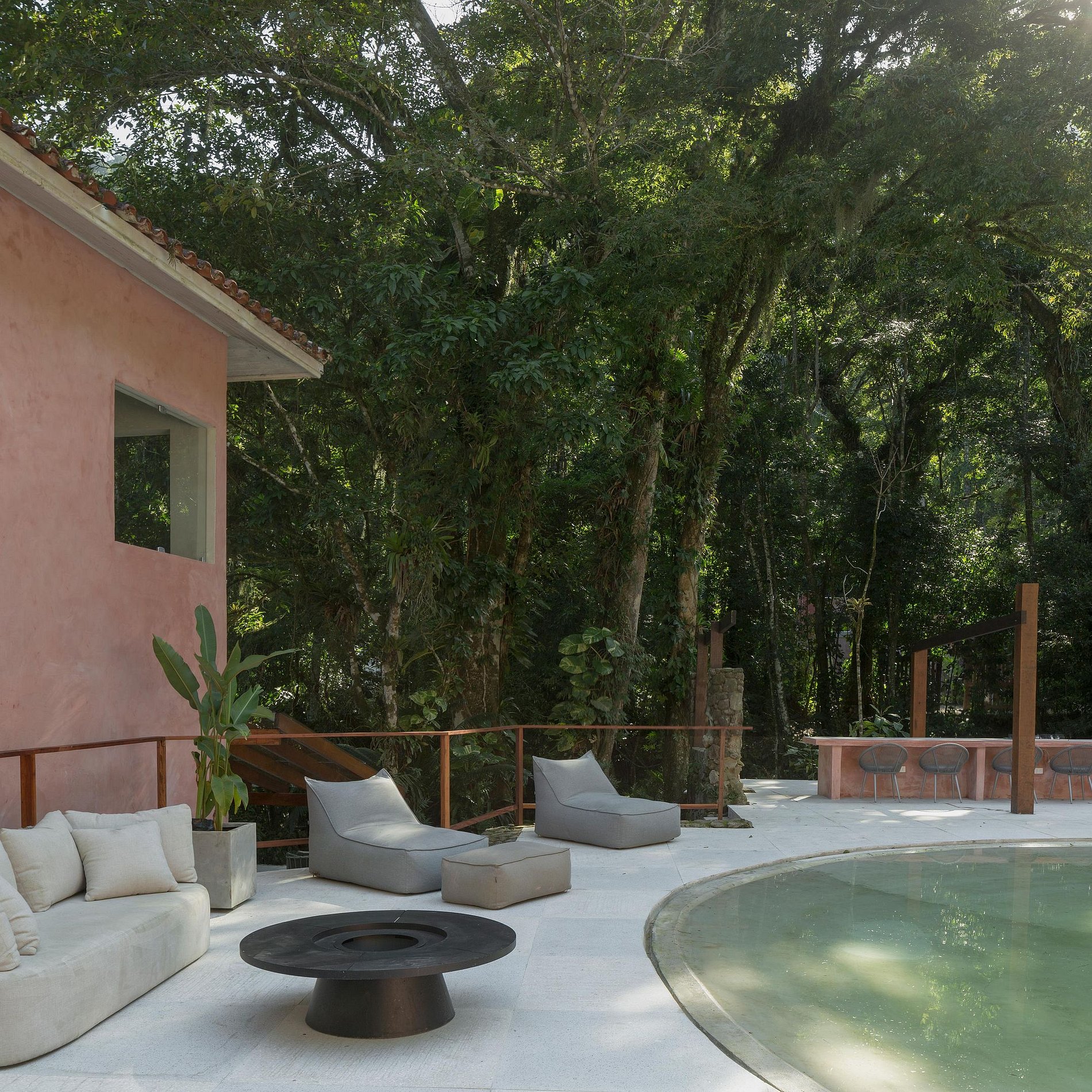 O estilo da casa é minimalista moderno, projetado pelo arquiteto @Pep_Pons e decorada em parceria com Mobiliário externo @greenhousemoveis Colchão @Zissoubr Revestimento @Concresteel Iluminação @Wentz.design e amenities da @Casacayeux.