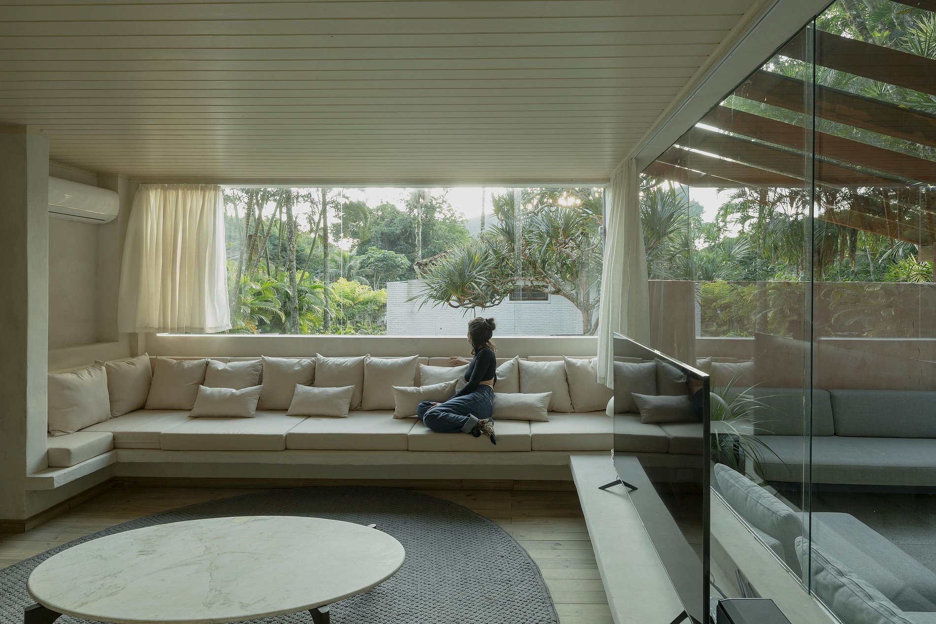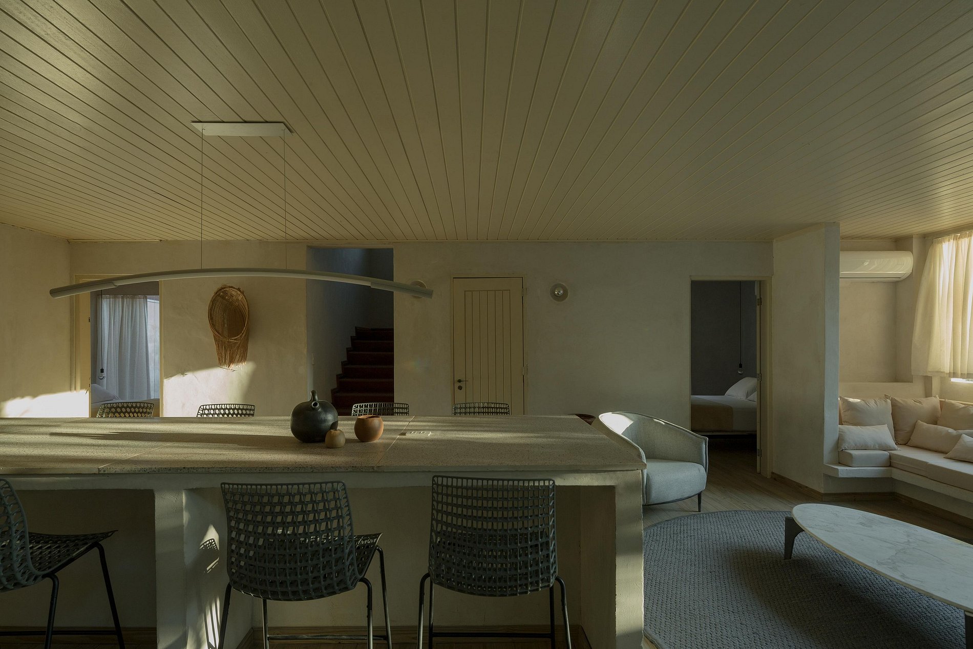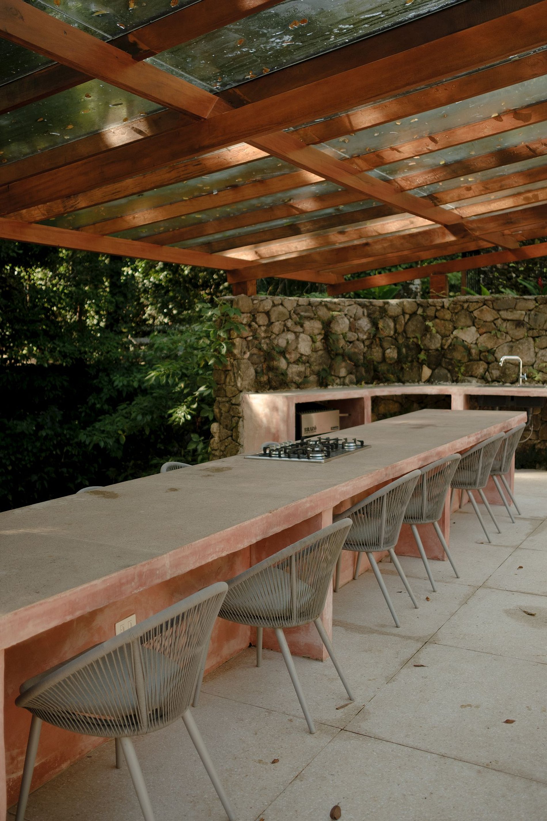 O estilo da casa é minimalista moderno, projetado pelo arquiteto @Pep_Pons e decorada em parceria com Mobiliário externo @greenhousemoveis Colchão @Zissoubr Revestimento @Concresteel Iluminação @Wentz.design e amenities da @Casacayeux.